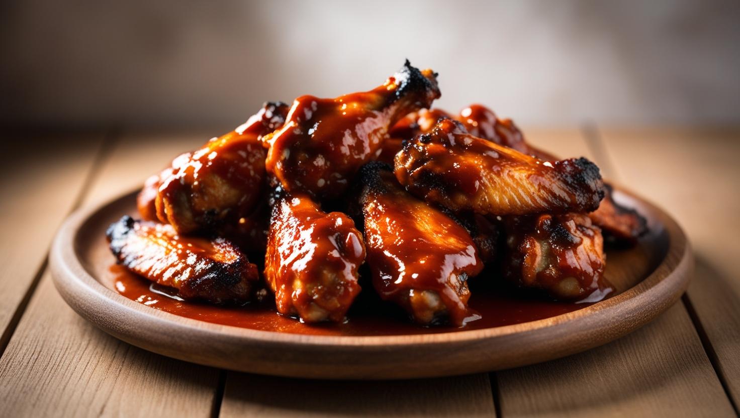 Knusprige Hühnchenflügel, die in einer süßen und würzigen BBQ-Sauce mariniert wurden. Außen knusprig, innen saftig, bieten sie den perfekten Bissen für Liebhaber von Fingerfood.